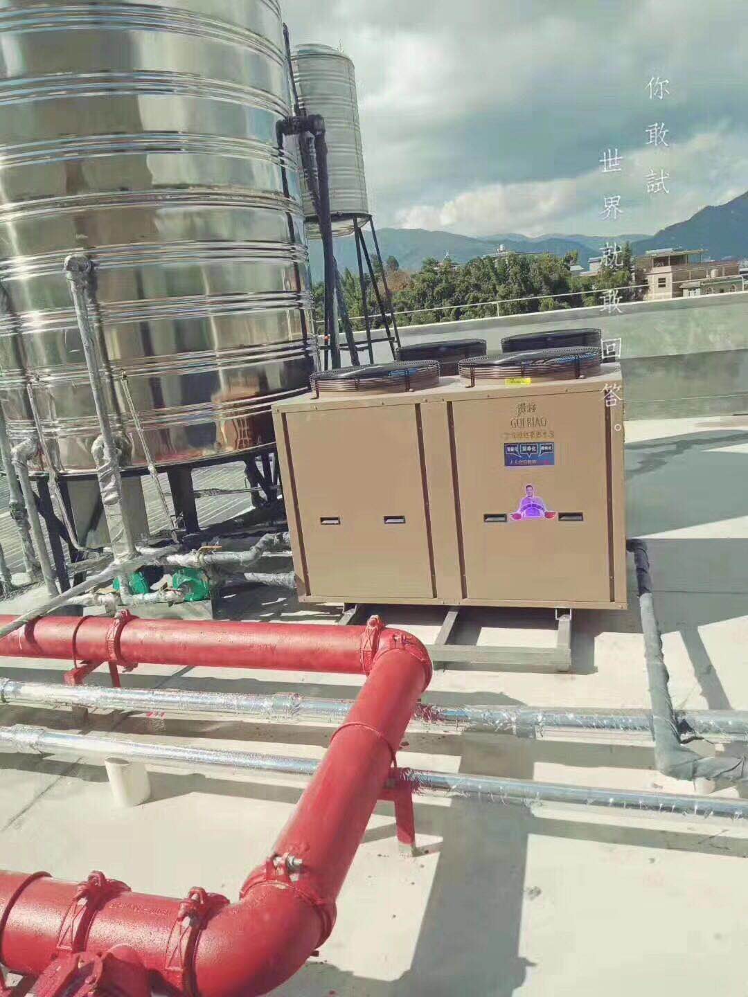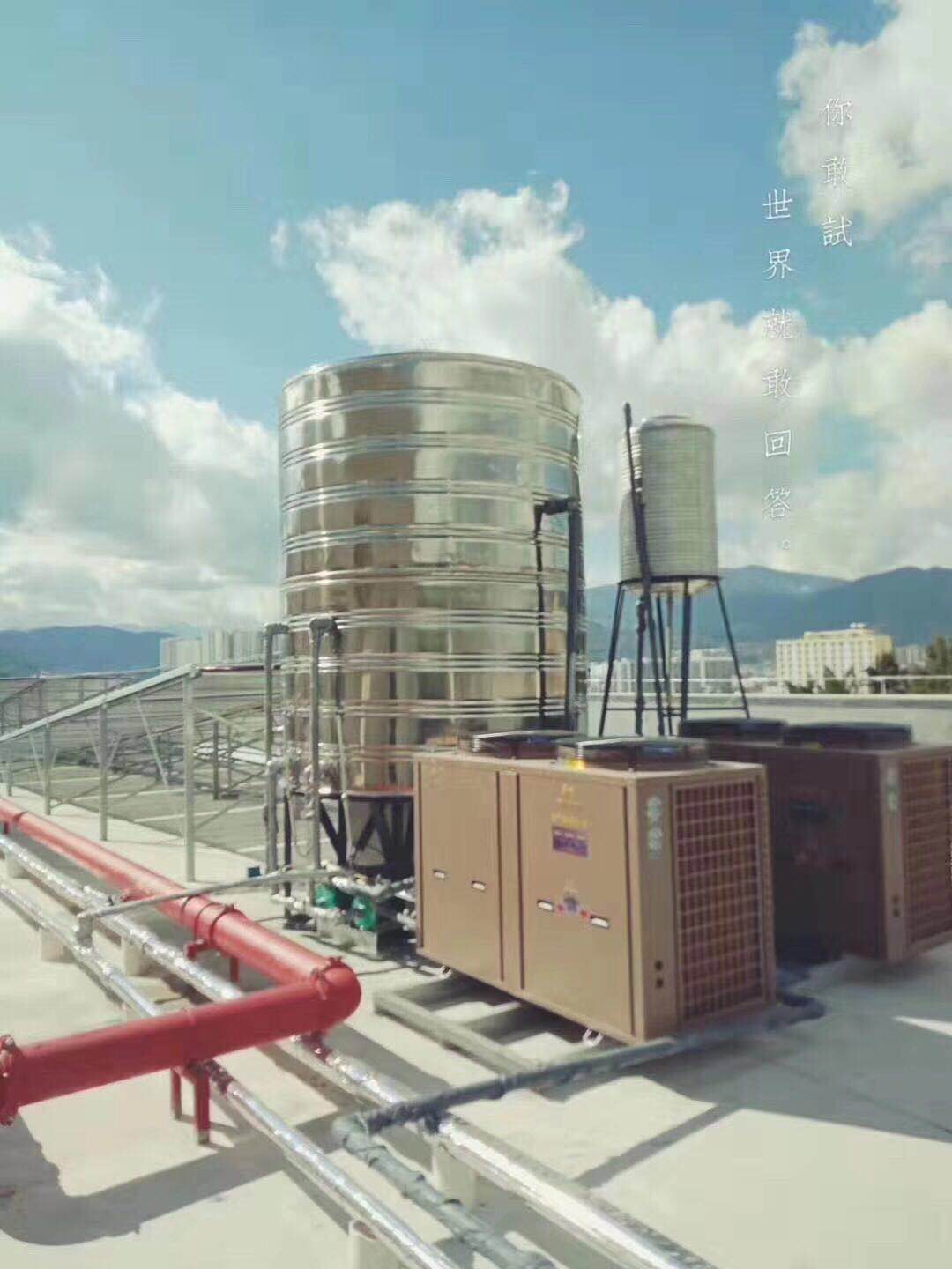 第一個(gè)項(xiàng)目安裝包含2套10P空氣能、2套循環(huán)泵、2套增壓泵(進(jìn)出水管各1套)、1個(gè)10噸保溫桶連接冷水塔、1個(gè)電控箱。