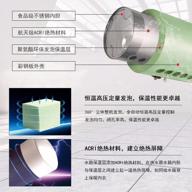 且貴標(biāo)集成太陽能水箱內(nèi)膽是儲存熱水的重要部分,其材料強(qiáng)度和耐腐蝕性至關(guān)重要。市場上有不銹鋼、搪瓷等材料。保溫層材料的好壞直接影響著熱效率和晚間清晨的使用。貴標(biāo)集成太陽能保溫水箱的內(nèi)膽所使用的材料不僅考慮到了材料強(qiáng)度和耐腐蝕性,更完美地契合和了因當(dāng)今人類生活水平不斷上升,對健康養(yǎng)生要求越來越高的特點(diǎn),因此貴標(biāo)太陽能的內(nèi)膽采用了加厚的SUS 304-2B食品級不銹鋼,此種材料的特點(diǎn)就是不管在何種水質(zhì)和何種環(huán)境下,耐腐蝕性更強(qiáng),而且在長期的浸泡下也不會產(chǎn)生任何有害物質(zhì),呵護(hù)您的肌膚!